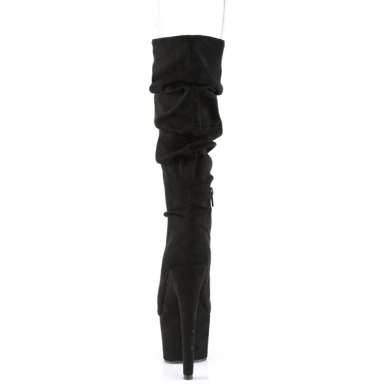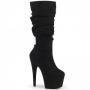 Command attention with the Adore-1061 Slouch Mid-Calf Boot. Crafted from luxurious black suede, these boots feature a dramatic 7" heel and a 2 3/4" platform for added height and style. The fully wrapped platform bottom complements the chic slouch design, making them a standout choice. The inside zip closure blends practicality with high-end fashion. Ideal for dancers, enthusiasts, or anyone ready to make a statement, the Adore-1061 adds that perfect finishing touch to any outfit.