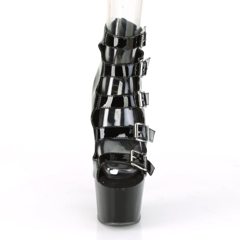 Transform your look with the Adore-700-33 black ankle bootie. Featuring an eye-catching 7-inch heel and a 2 3/4-inch platform, these open-toe boots are designed to turn heads. The multiple buckle details along the open front provide both flair and functionality, accompanied with the back zip closure. Whether you're preparing for a performance or dressing up for an evening out, the Adore-700-33 delivers an impactful style statement.