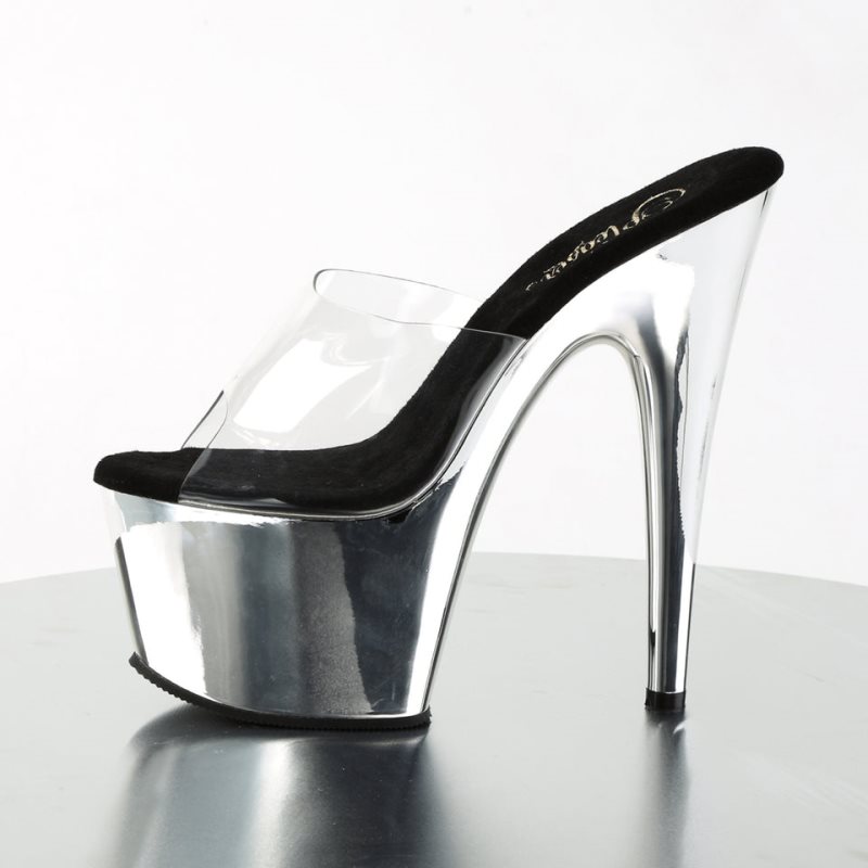 Pleaser Adore-701 Women's Platform Slides Silver / Clear | NZ OAVUNH