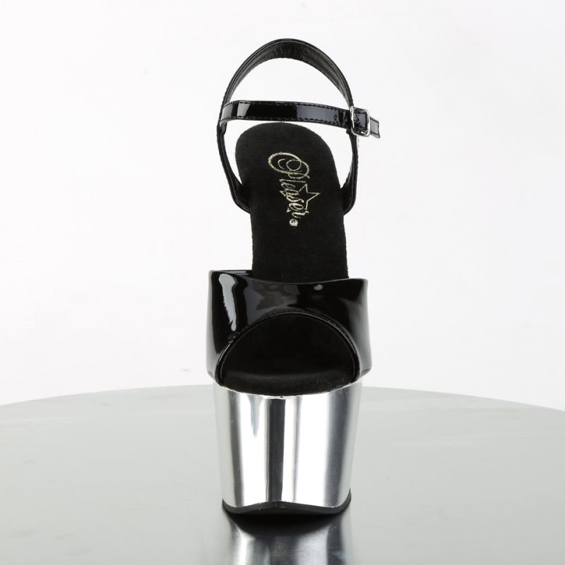 Pleaser Adore-709 Women's Platform Heels Sandals Black / Silver | NZ AYQTSM