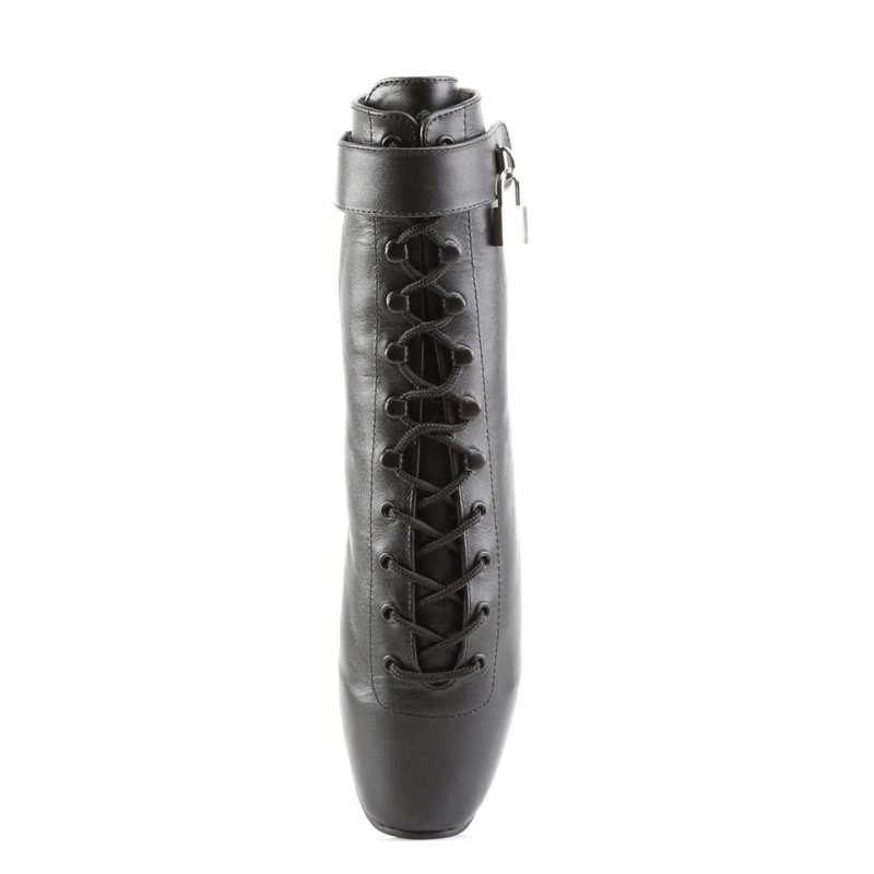 Command the room with the Ballet-1025 Pumps, a masterful blend of elegance and edge. These black leather ankle boots boast a sky-high 7-inch (17.8 cm) spike heel, perfect for those who thrive on making a bold statement. The padlock detail adds an element of tantalizing secrecy, while the no-zipper design ensures a flawless, uninterrupted look. Crafted for the discerning connoisseur, these pumps are not just footwear but an embodiment of power, control, and unrestrained style.