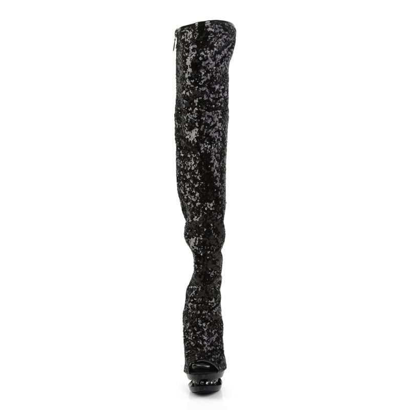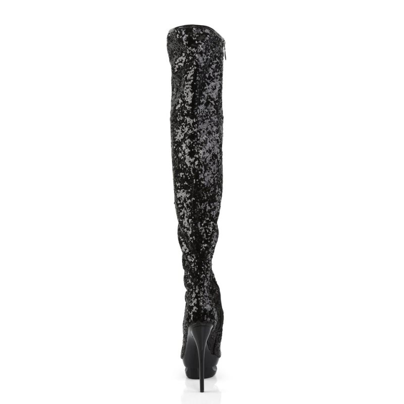 Step into the spotlight with the Blondie-R-3011, a thigh boot that seamlessly combines glamour and allure. Featuring a 6-inch stiletto heel and a 1 1/2-inch platform, this open-toe masterpiece is crafted to elevate your style. Adorned with sparkling rhinestone embellishments on its inlay, it captures the essence of sophistication. The full inner side zipper offers a smooth transition for slipping on and off, making them perfect for a variety of occasions. In classic black, they are a versatile addition to any wardrobe, poised to add a touch of elegance to your ensemble.