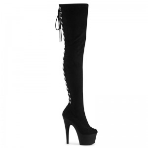 Unleash your inner diva with the Delight-3000HWR thigh-high boots. Standing tall with a 6-inch stiletto heel and a 1 3/4-inch platform, these boots are made to captivate. The striking black hologram material stretches for a dramatic, reflective effect, while the fully wrapped matching platform completes the look. A 12-inch inner side zipper makes these boots both functional and fabulous. Step into the spotlight with the Delight-3000HWR and let your confidence shine.
