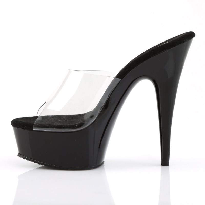 Step into elegance and allure with the Delight-601 Peep Toe Slide. Featuring a striking 6-inch stiletto heel and a 1 3/4-inch platform, these slides add the perfect amount of height. The clear and black design offers a modern and chic look, allowing your outfit to shine. Ideal for dancers, nightlife enthusiasts, or anyone looking to make a statement, the Delight-601 combines fashion and function in one stunning package. Experience a new level of sophistication with each step.