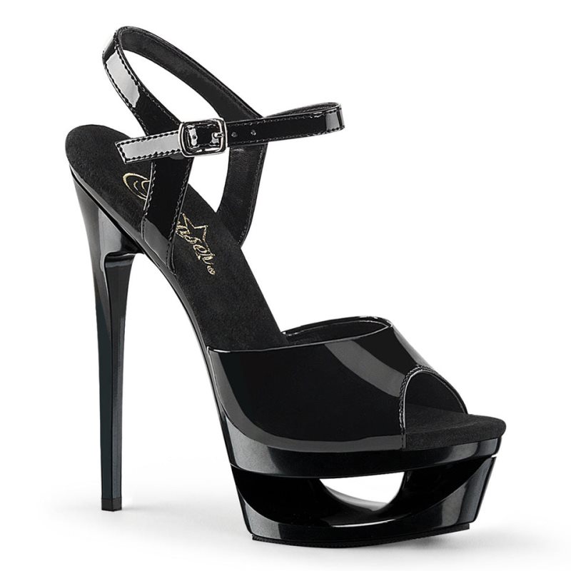 Step into a world of elegance with the Eclipse-609 Ankle Strap Sandal. Featuring a striking 6 1/2-inch stiletto heel paired with a unique 1 3/4-inch cut-out platform, these sandals are a true masterpiece of design. The sleek black finish complements any outfit, making them perfect for those special nights out or for adding a touch of glamour to your everyday look. With their eye-catching silhouette, the Eclipse-609 sandals are more than just footwear; they're a fashion statement.