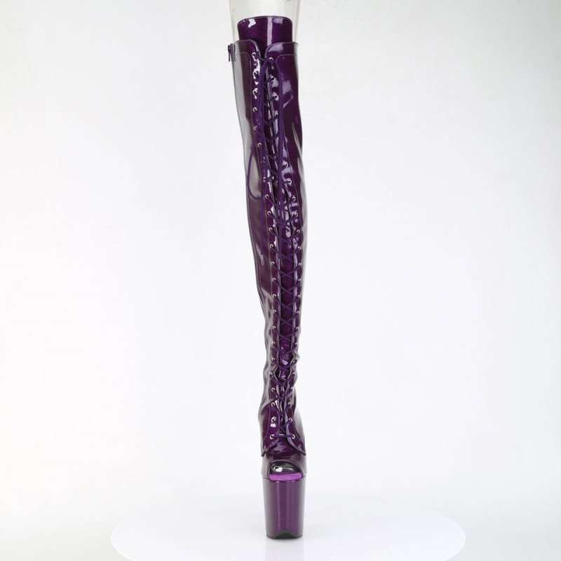 Pleaser Flamingo-3021GP Glitter Women's Thigh High Boots Purple | NZ TLWPOG