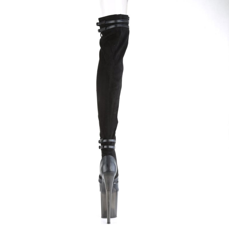 Meet the Flamingo-3027 Thigh High Boots, where elegance meets boldness. Standing at an impressive 8-inch heel and a 4-inch platform, these open-toe lace-up boots are designed to turn heads. Dual buckle straps at the ankle and thigh provide a fashionable accent, while the black suede material adds a touch of luxury. Perfect for those looking to make a powerful fashion statement, the Flamingo-3027 is a showstopper in any setting.