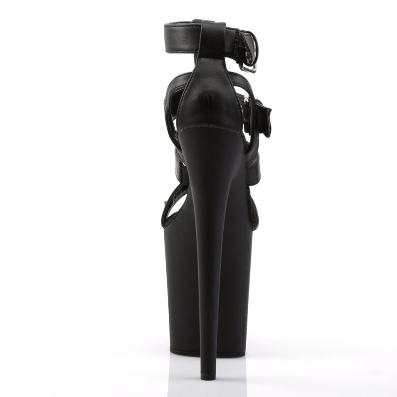 Step into the spotlight with the Flamingo-858, a daring blend of height and style. This strappy T-strap sandal is crafted in black vegan leather and adorned with bold metal rings and studs for a standout look. The impressive 8-inch stiletto heel paired with a 4-inch platform offers a striking elevation, while the closed back adds a touch of sophistication. Ideal for those who love to make a statement with their footwear, the Flamingo-858 is a unique addition to any ensemble.