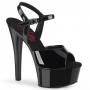 Experience the allure of high fashion with the Gleam-609 Ankle Strap Sandal. Showcasing a bold 6-inch heel and a balanced 1 3/4-inch platform, these sandals are designed for those who love to make a statement. The shiny black design brings a timeless appeal, effortlessly complementing various styles and ensembles. The ankle strap detailing adds a layer of sophistication, perfect for a memorable night out or an elegant event. Make every step a stylish one with the Gleam-609.