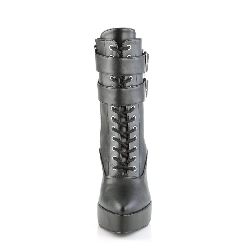 Transform your look with the stunning Indulge-1026 Ankle Boots. Elevating you with a dramatic 5 1/4" (13.3 cm) heel and a 1 1/4" (3.2 cm) platform, these boots exude confidence and style. The black vegan leather offers a sleek, polished finish that's both ethical and luxurious. With a lace-up front for and a full inner side zipper, these boots are designed for both function and fashion. Step out and make an unforgettable impression with the Indulge-1026.