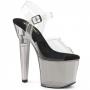 Step into a world of enchantment with the Lovesick-708T sandals. These sandals boast a distinct 7-inch heart-shaped heel paired with a substantial 3 1/4-inch platform, crafted to make a stylish statement. The clear and gray styling offers a versatile look that complements a variety of outfits. Complete with an ankle strap, these sandals are a splendid pick for those who appreciate footwear that stands out