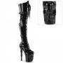 Elevate your look with the Rapture-3028 Thigh High Boots, a daring fusion of gothic elegance and futuristic design. Set atop an 8-inch finger bone heel and 4-inch skull sculpted platform, these boots are true showstoppers. The front features a ribbon lace-up and triple buckle straps, adding intricate detail to your ensemble. Stretchy material offers ease of movement, complemented by a full-length inner side zip closure. Perfect for those who embrace bold, avant-garde fashion, these boots will transform any outfit.