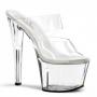 Step into the spotlight with the Sky-302 slides, a glamorous choice for anyone looking to shine. These slides feature an impressive 7-inch heel complemented by a 2 3/4-inch chrome-plated platform, offering a striking elevation that captivates. The two-band design, with its sleek clear and black color scheme, adds a modern twist to these stylish shoes, making them a dazzling addition to any ensemble.